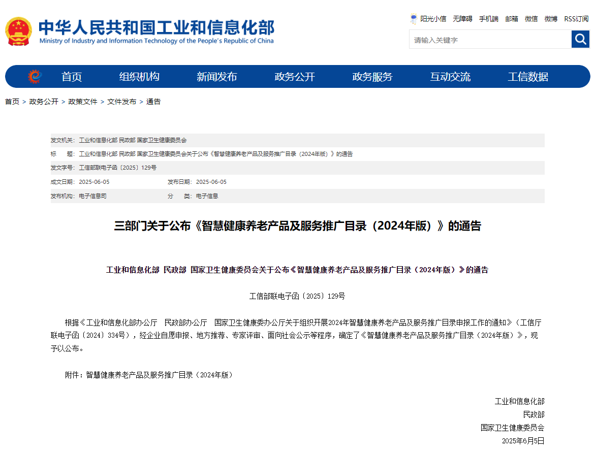 《智慧健康養(yǎng)老產(chǎn)品及服務(wù)推廣目錄》是為深入貫徹《中共中央 國務(wù)院關(guān)于加強(qiáng)新時代老齡工作的意見》《國務(wù)院關(guān)于印發(fā)“十四五”國家老齡事業(yè)發(fā)展和養(yǎng)老服務(wù)體系規(guī)劃的通知》《國務(wù)院辦公廳關(guān)于發(fā)展銀發(fā)經(jīng)濟(jì)增進(jìn)老年人福祉的意見》,落實《智慧健康養(yǎng)老產(chǎn)業(yè)發(fā)展行動計劃(2021—2025年)》,促進(jìn)典型智慧健康養(yǎng)老產(chǎn)品和服務(wù)推廣應(yīng)用,推動智慧健康養(yǎng)老產(chǎn)業(yè)發(fā)展,由工信部、民政部、衛(wèi)健委三部門聯(lián)合組織開展的一次評選活動,按照中選優(yōu)的原則確定擬入圍的產(chǎn)品和服務(wù),向社會公示,按程序正式公布智慧健康養(yǎng)老產(chǎn)品及服務(wù)推廣目錄。