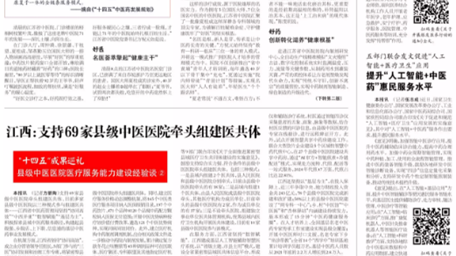 - 江西:支持69家县级中医医院牵头组建医共体